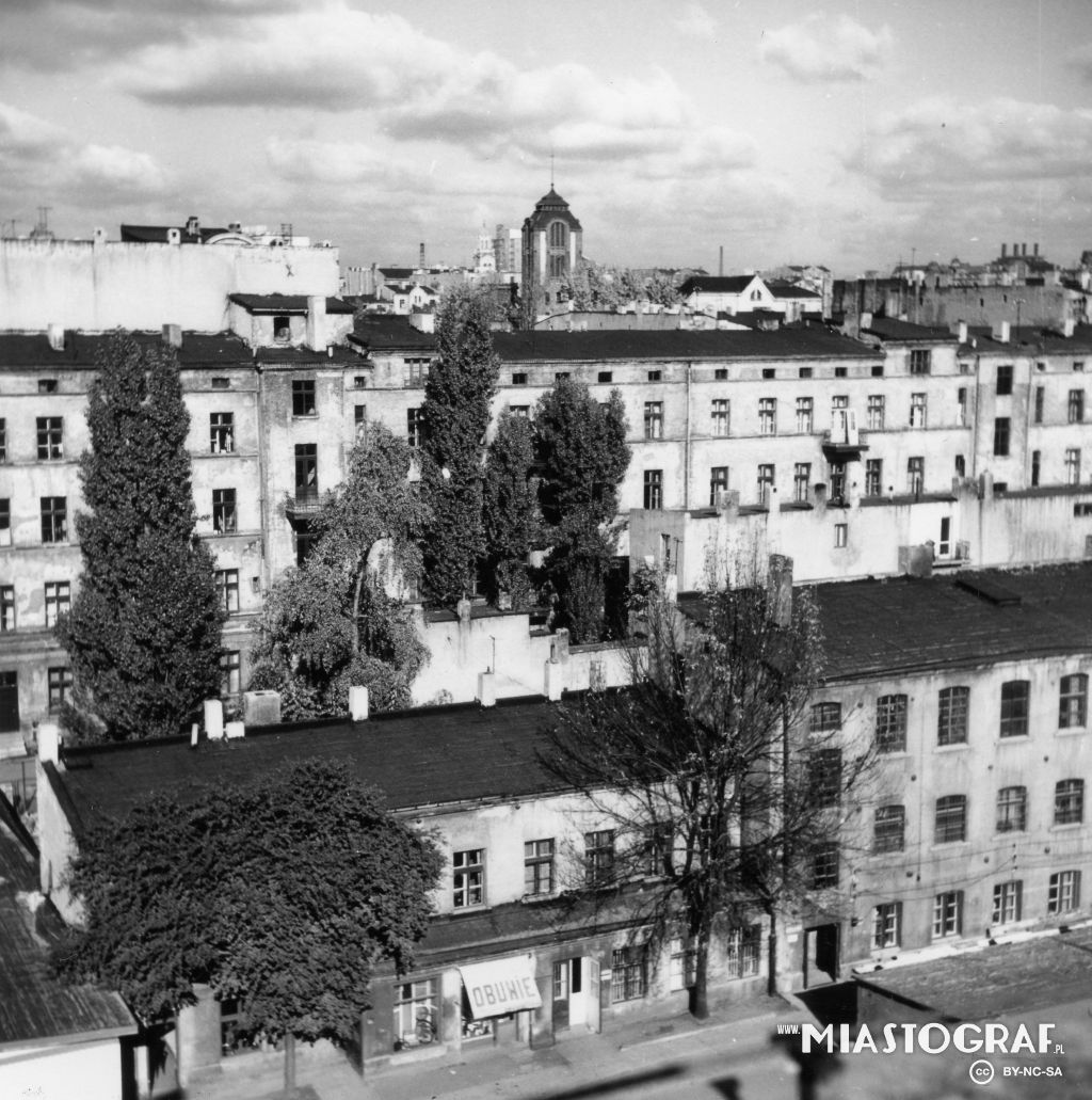 Widok z wieży katedry w kierunku płn.- zach.( po 1927r.). Po prawej kamienica z ul.Radwańska 19 / Wólczańska, po lewej szpital ewangelicki św. Jana. tid.