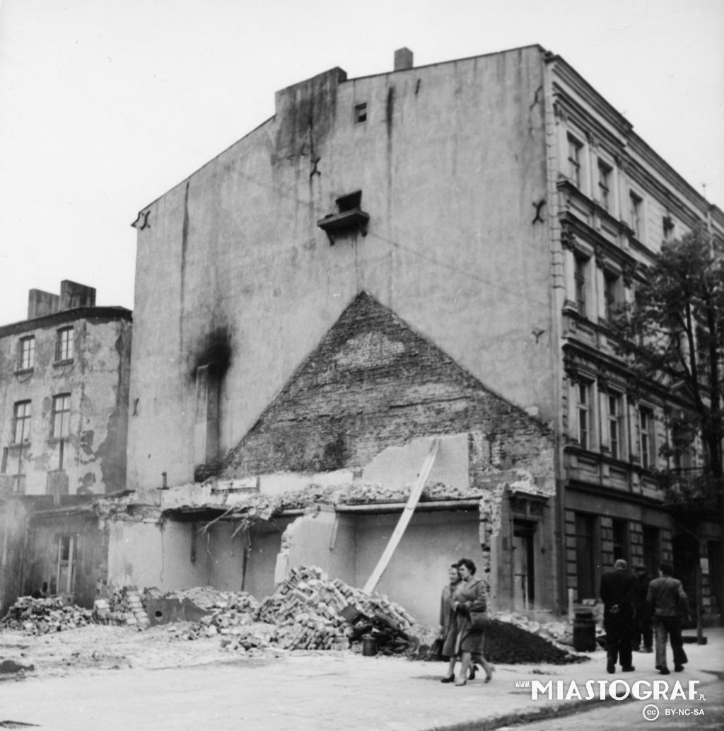 Widok z parzystej strony ulicy na posesję pod nr 175a. Parterowy, murowany dom frontowy wybudował w 1829r. Jan Adamowski, właściciel szynku wystawionego w 1824 r. na Nowym Rynku 16 (ob. pl. Wolności ...