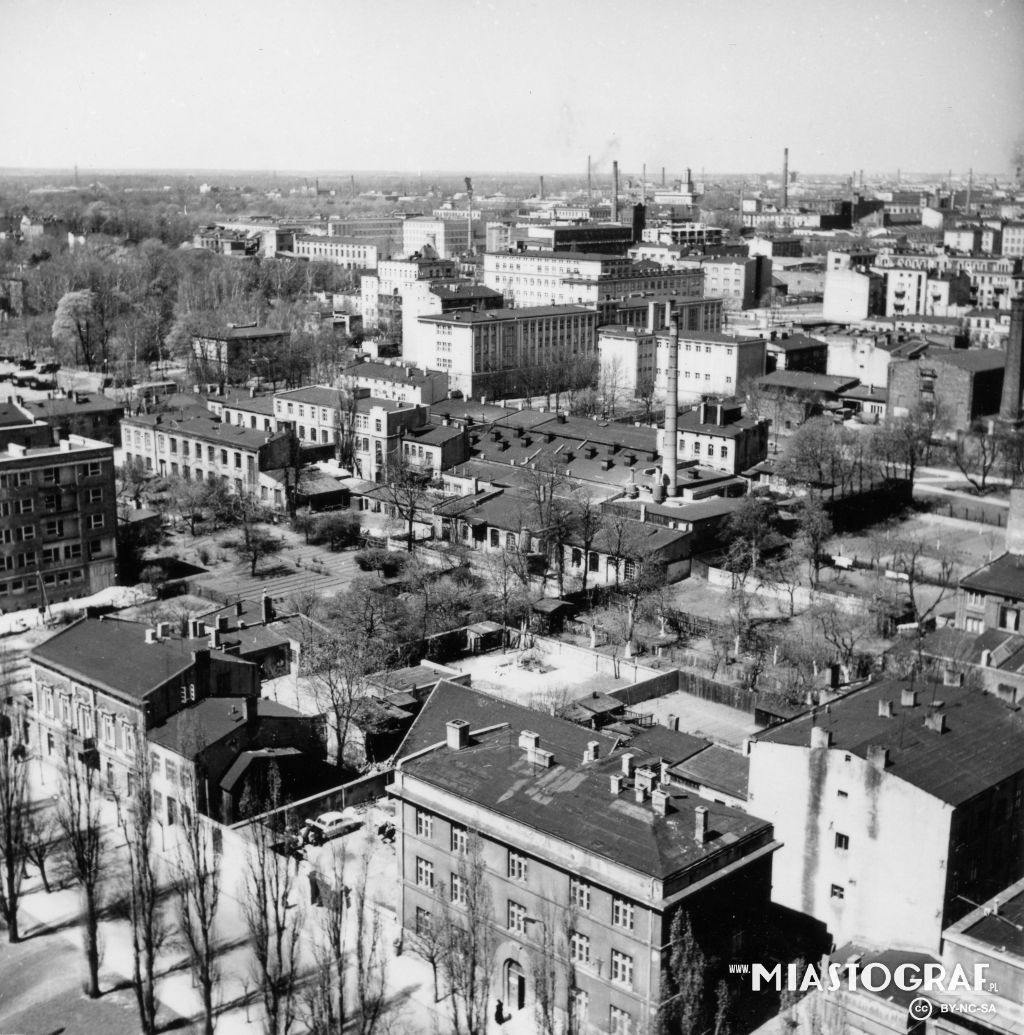 Widok z wieży katedry w kierunku płn.- zach.( po 1927r.). Po prawej kamienica z ul.Radwańska 19 / Wólczańska, po lewej szpital ewangelicki św. Jana. tid.