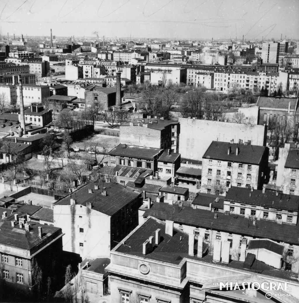 Widok z wieży katedry w kierunku płn.- zach.( po 1927r.). Po prawej kamienica z ul.Radwańska 19 / Wólczańska, po lewej szpital ewangelicki św. Jana. tid.