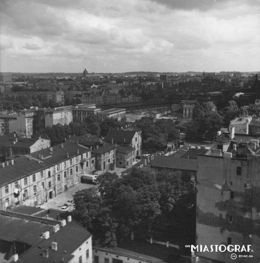 Widok z biurowca Biura Projektów Budownictwa Komunalnego w Łodzi w str. Dworca Łódź Fabryczna.