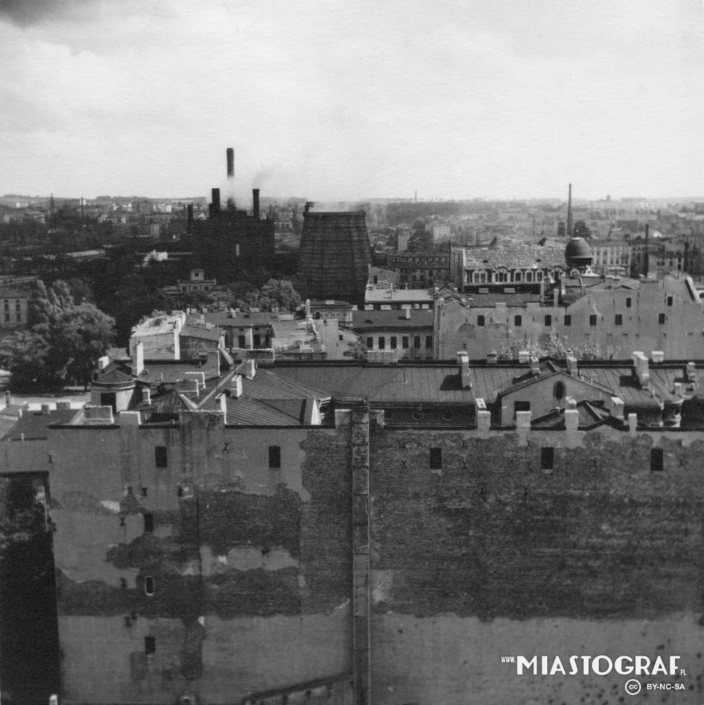 Widok z wieży katedry w kierunku płn.- zach.( po 1927r.). Po prawej kamienica z ul.Radwańska 19 / Wólczańska, po lewej szpital ewangelicki św. Jana. tid.