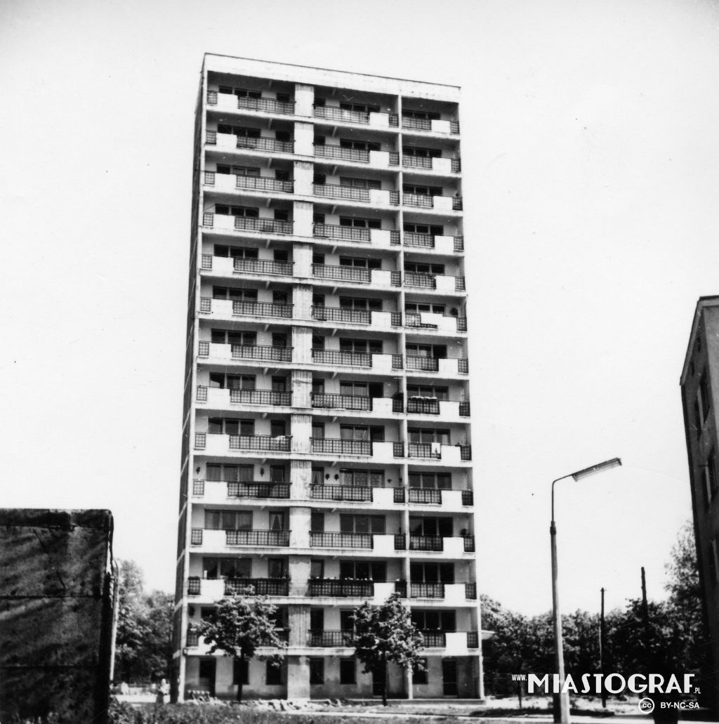 Widok na blok przy ul. Spornej 72 i wieżowiec przy ul. Boya-Żeleńskiego 12. Ulica Sporna została wytyczona w l. 70. XIX w. na terenie dawnej osady smolarskiej Kusy Kąt, położonej w pobliżu drogi do Br...