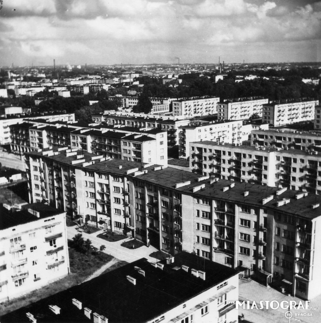 Widok na blok przy ul. Spornej 72 i wieżowiec przy ul. Boya-Żeleńskiego 12. Ulica Sporna została wytyczona w l. 70. XIX w. na terenie dawnej osady smolarskiej Kusy Kąt, położonej w pobliżu drogi do Br...