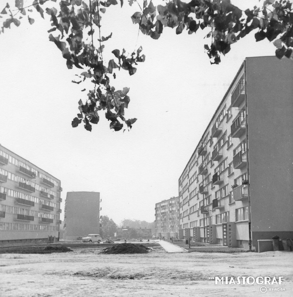 Widok na blok przy ul. Spornej 72 i wieżowiec przy ul. Boya-Żeleńskiego 12. Ulica Sporna została wytyczona w l. 70. XIX w. na terenie dawnej osady smolarskiej Kusy Kąt, położonej w pobliżu drogi do Br...