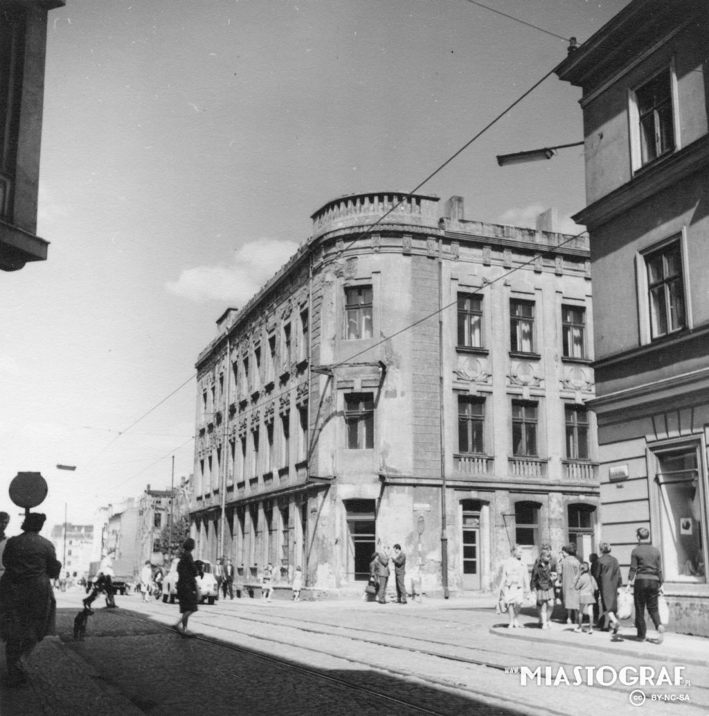 Kamienica stojąca na rogu ul. Więckowskiego i Zachodniej - widok przed rozbiórką. Widoczny również fragment kamienicy z płd.- wsch. narożnika ul. Zachodniej.