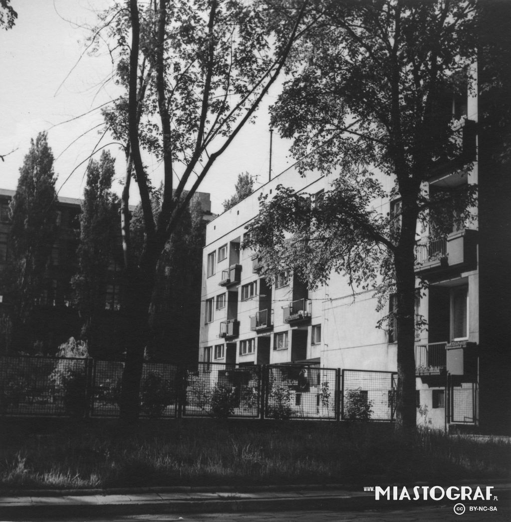 Widok na blok przy ul. Spornej 72 i wieżowiec przy ul. Boya-Żeleńskiego 12. Ulica Sporna została wytyczona w l. 70. XIX w. na terenie dawnej osady smolarskiej Kusy Kąt, położonej w pobliżu drogi do Br...