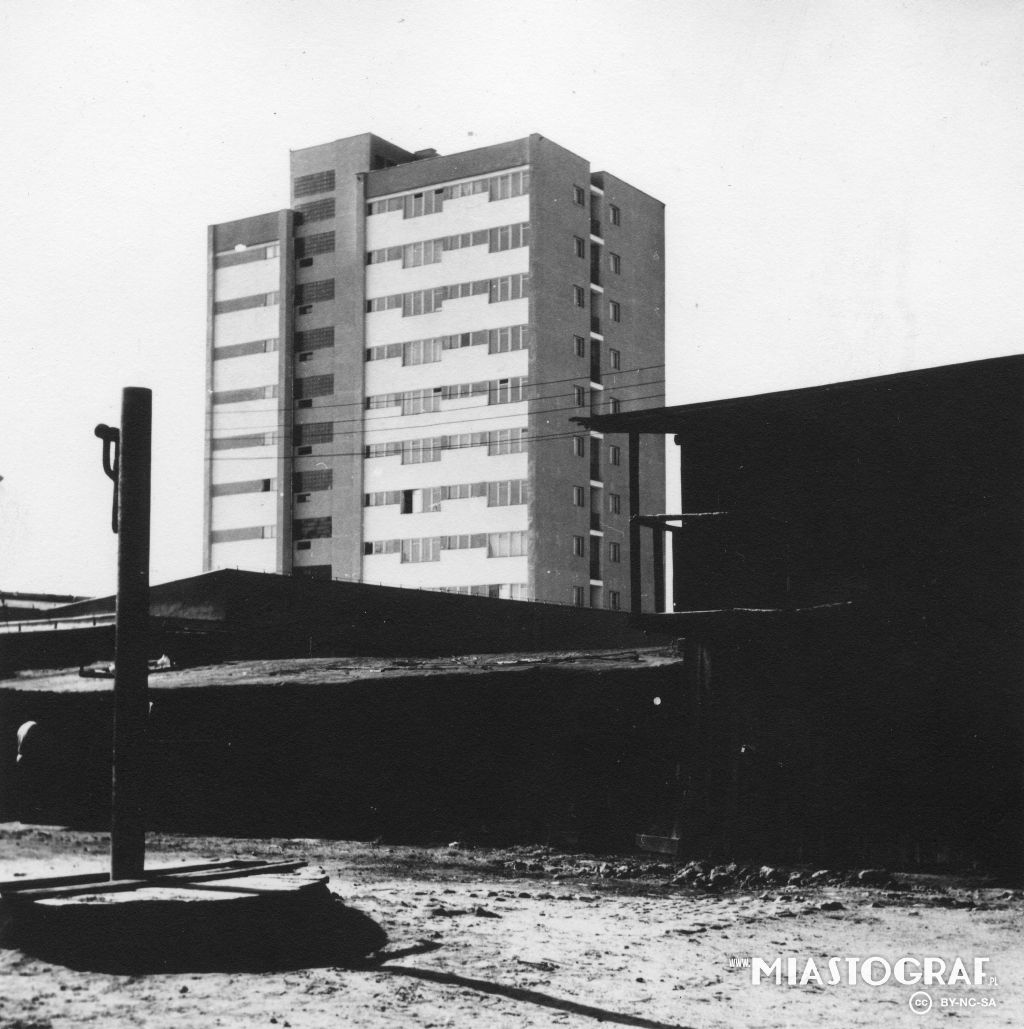 Widok na blok przy ul. Spornej 72 i wieżowiec przy ul. Boya-Żeleńskiego 12. Ulica Sporna została wytyczona w l. 70. XIX w. na terenie dawnej osady smolarskiej Kusy Kąt, położonej w pobliżu drogi do Br...