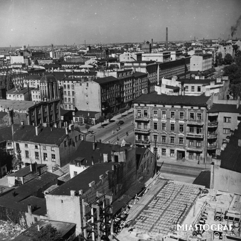 Widok z wieży katedry w kierunku płn.- zach.( po 1927r.). Po prawej kamienica z ul.Radwańska 19 / Wólczańska, po lewej szpital ewangelicki św. Jana. tid.