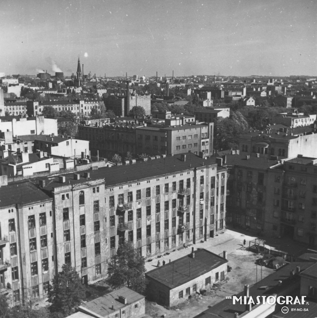 Widok z wieży katedry w kierunku płn.- zach.( po 1927r.). Po prawej kamienica z ul.Radwańska 19 / Wólczańska, po lewej szpital ewangelicki św. Jana. tid.