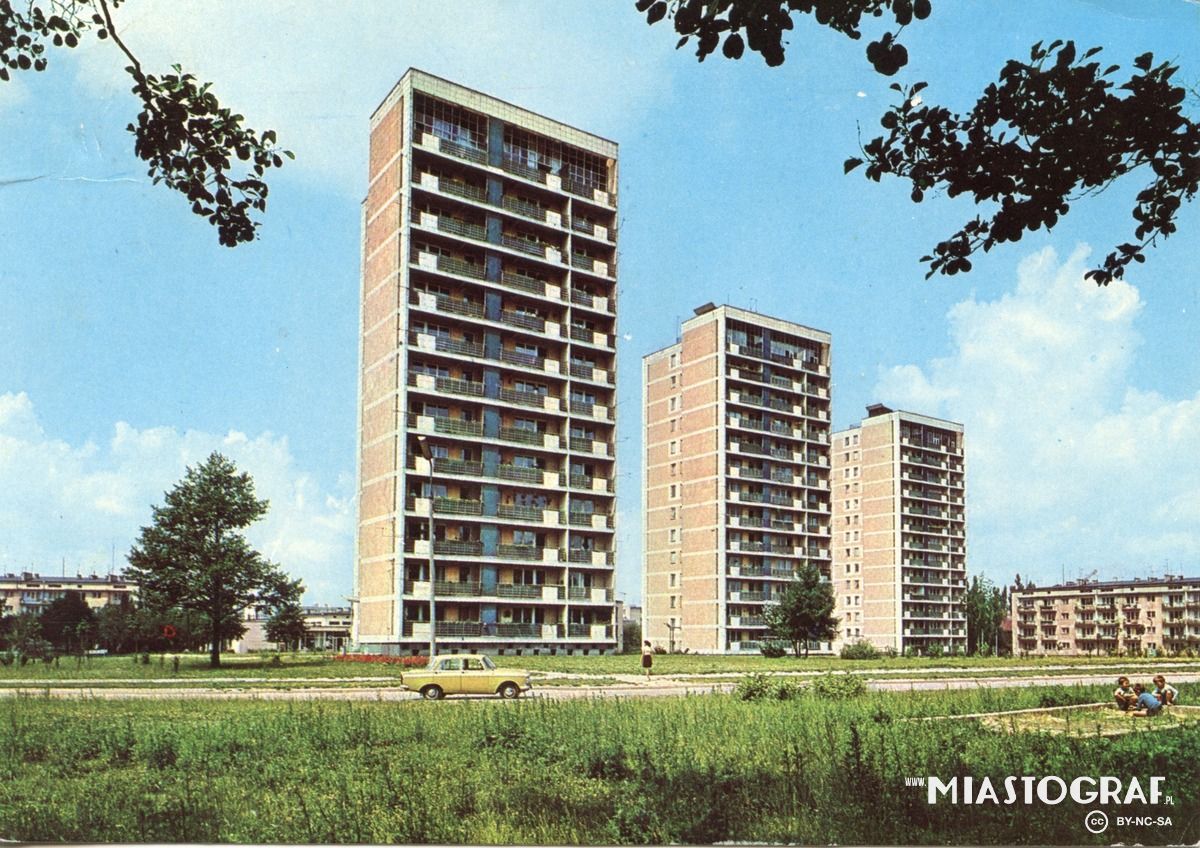 Widok na blok przy ul. Spornej 72 i wieżowiec przy ul. Boya-Żeleńskiego 12. Ulica Sporna została wytyczona w l. 70. XIX w. na terenie dawnej osady smolarskiej Kusy Kąt, położonej w pobliżu drogi do Br...
