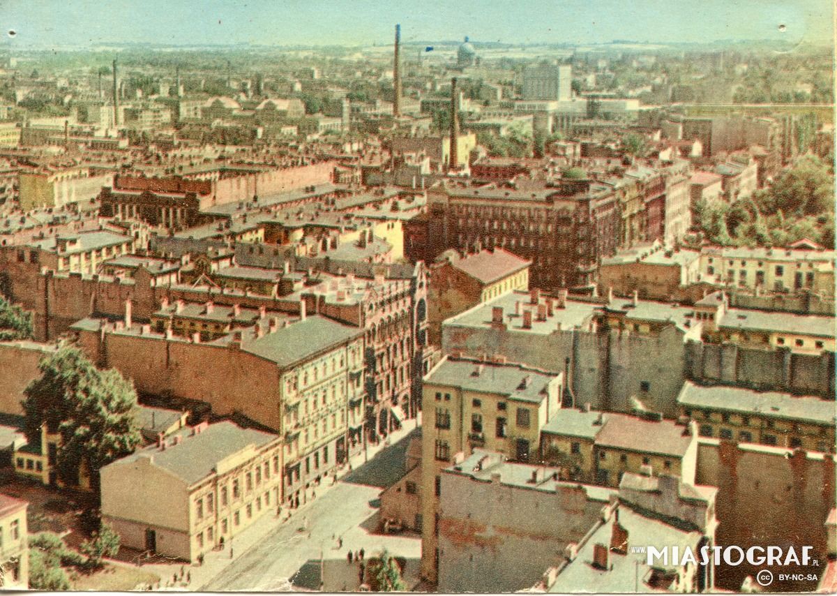 Widok z wieży katedry w kierunku płn.- zach.( po 1927r.). Po prawej kamienica z ul.Radwańska 19 / Wólczańska, po lewej szpital ewangelicki św. Jana. tid.