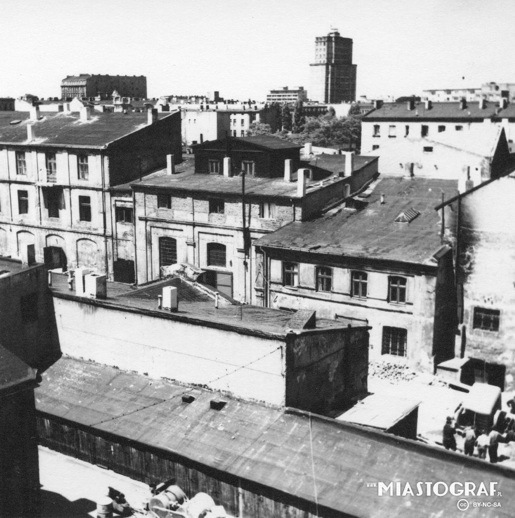 Widok z wieży katedry w kierunku płn.- zach.( po 1927r.). Po prawej kamienica z ul.Radwańska 19 / Wólczańska, po lewej szpital ewangelicki św. Jana. tid.