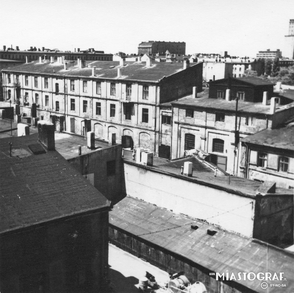 Widok na oficynę i zabudowania wewnątrz posesji przy ul. Kilińskiego 87. W dali widoczny budynek hotelu SAVOY.