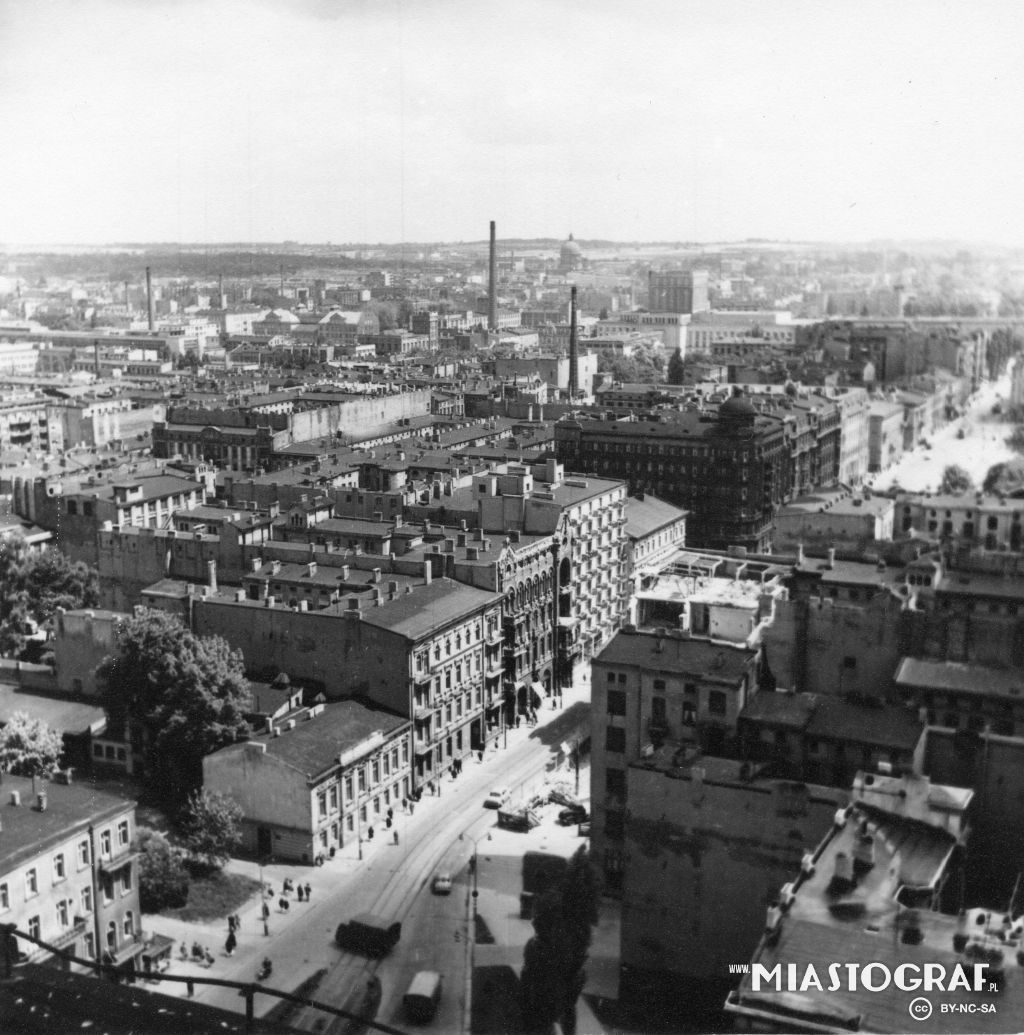 Widok z wieży katedry w kierunku płn.- zach.( po 1927r.). Po prawej kamienica z ul.Radwańska 19 / Wólczańska, po lewej szpital ewangelicki św. Jana. tid.