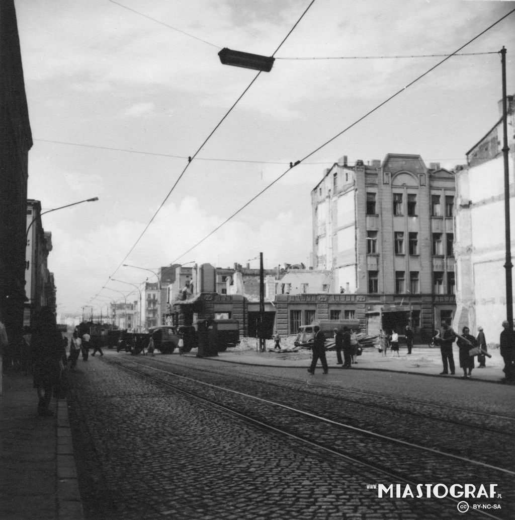 Ulica Główna (dzisiejsza al. J. Piłsudskiego) stanowiła główny trakt na osi wschód-zachód kształtującej się Łodzi; łączyła Nową Dzielnicę z ulicą Piotrkowską. Widok w str. ul. Kilińskiego. Widoczna k...