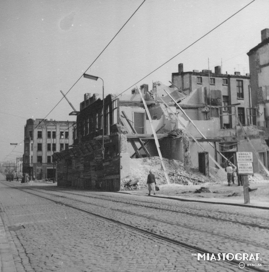 W centrum zdjęcia, rozbiórka frantowej kamienicy pod adresem Zachodnia 66.