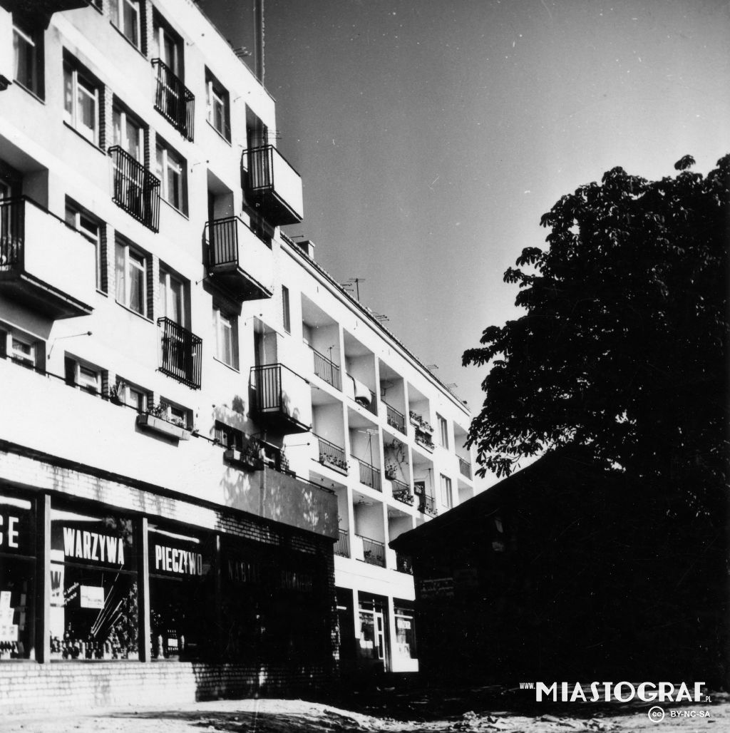 Widok na blok przy ul. Spornej 72 i wieżowiec przy ul. Boya-Żeleńskiego 12. Ulica Sporna została wytyczona w l. 70. XIX w. na terenie dawnej osady smolarskiej Kusy Kąt, położonej w pobliżu drogi do Br...