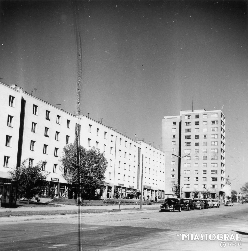 Widok na blok przy ul. Spornej 72 i wieżowiec przy ul. Boya-Żeleńskiego 12. Ulica Sporna została wytyczona w l. 70. XIX w. na terenie dawnej osady smolarskiej Kusy Kąt, położonej w pobliżu drogi do Br...