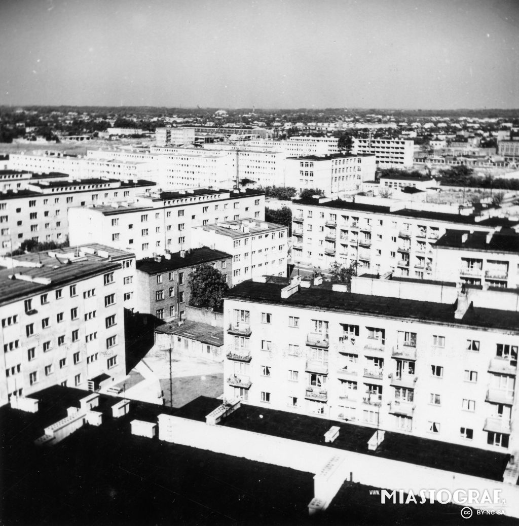 Widok na blok przy ul. Spornej 72 i wieżowiec przy ul. Boya-Żeleńskiego 12. Ulica Sporna została wytyczona w l. 70. XIX w. na terenie dawnej osady smolarskiej Kusy Kąt, położonej w pobliżu drogi do Br...