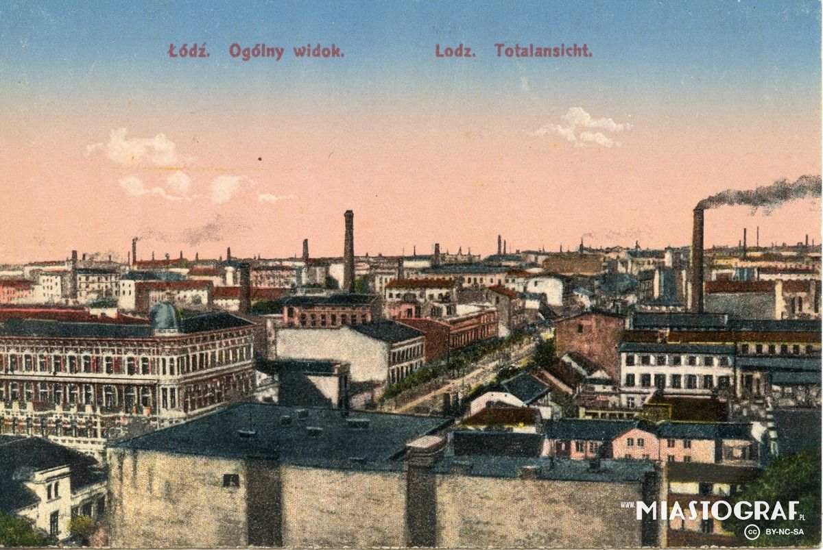 Widok z wieży katedry w kierunku płn.- zach.( po 1927r.). Po prawej kamienica z ul.Radwańska 19 / Wólczańska, po lewej szpital ewangelicki św. Jana. tid.