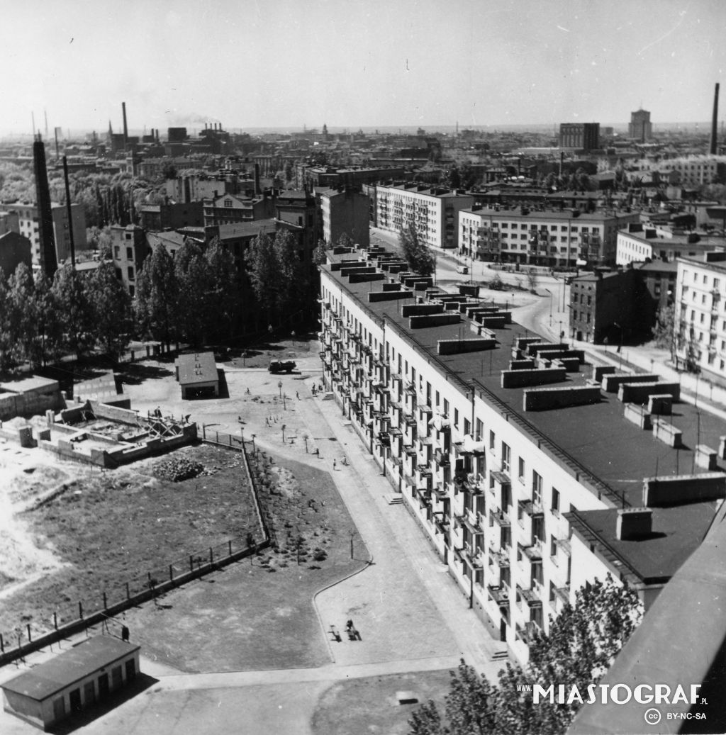 Widok na blok przy ul. Spornej 72 i wieżowiec przy ul. Boya-Żeleńskiego 12. Ulica Sporna została wytyczona w l. 70. XIX w. na terenie dawnej osady smolarskiej Kusy Kąt, położonej w pobliżu drogi do Br...