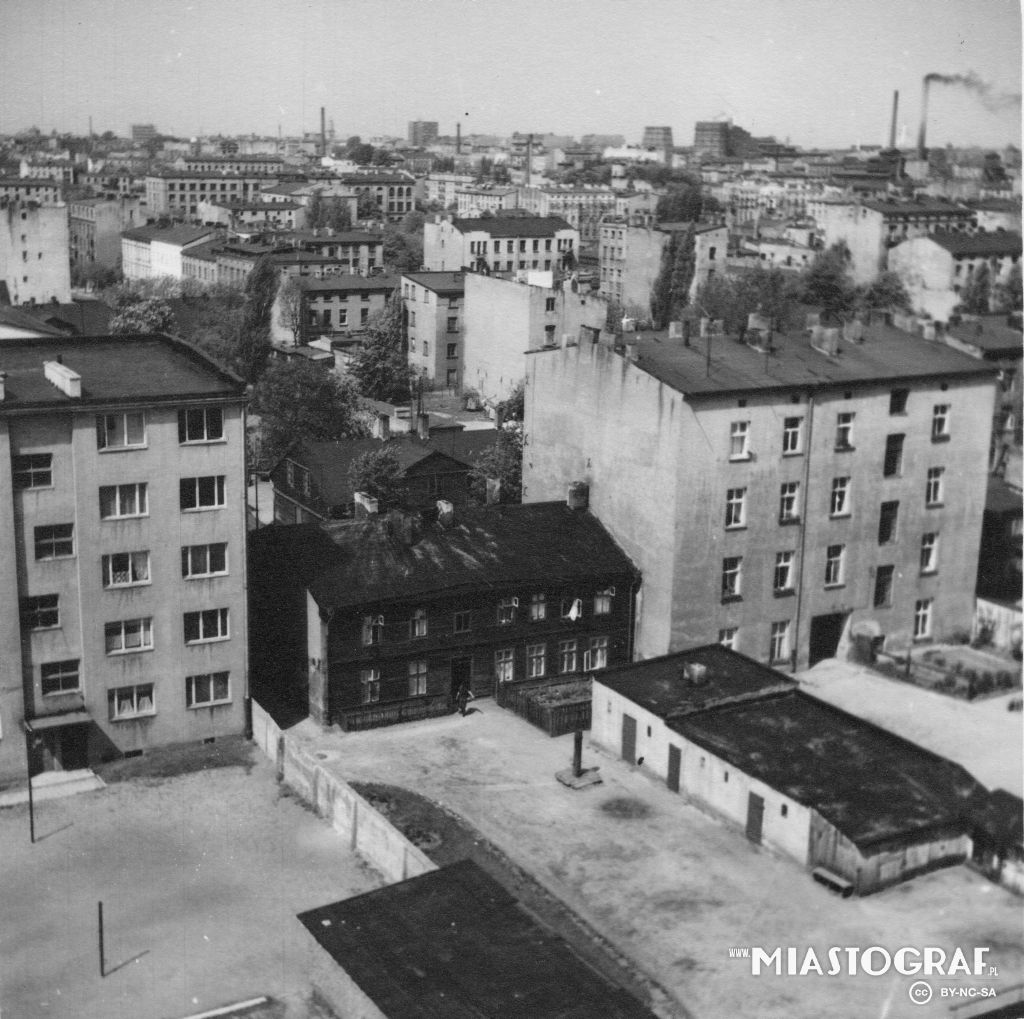 Widok z wieży katedry w kierunku płn.- zach.( po 1927r.). Po prawej kamienica z ul.Radwańska 19 / Wólczańska, po lewej szpital ewangelicki św. Jana. tid.
