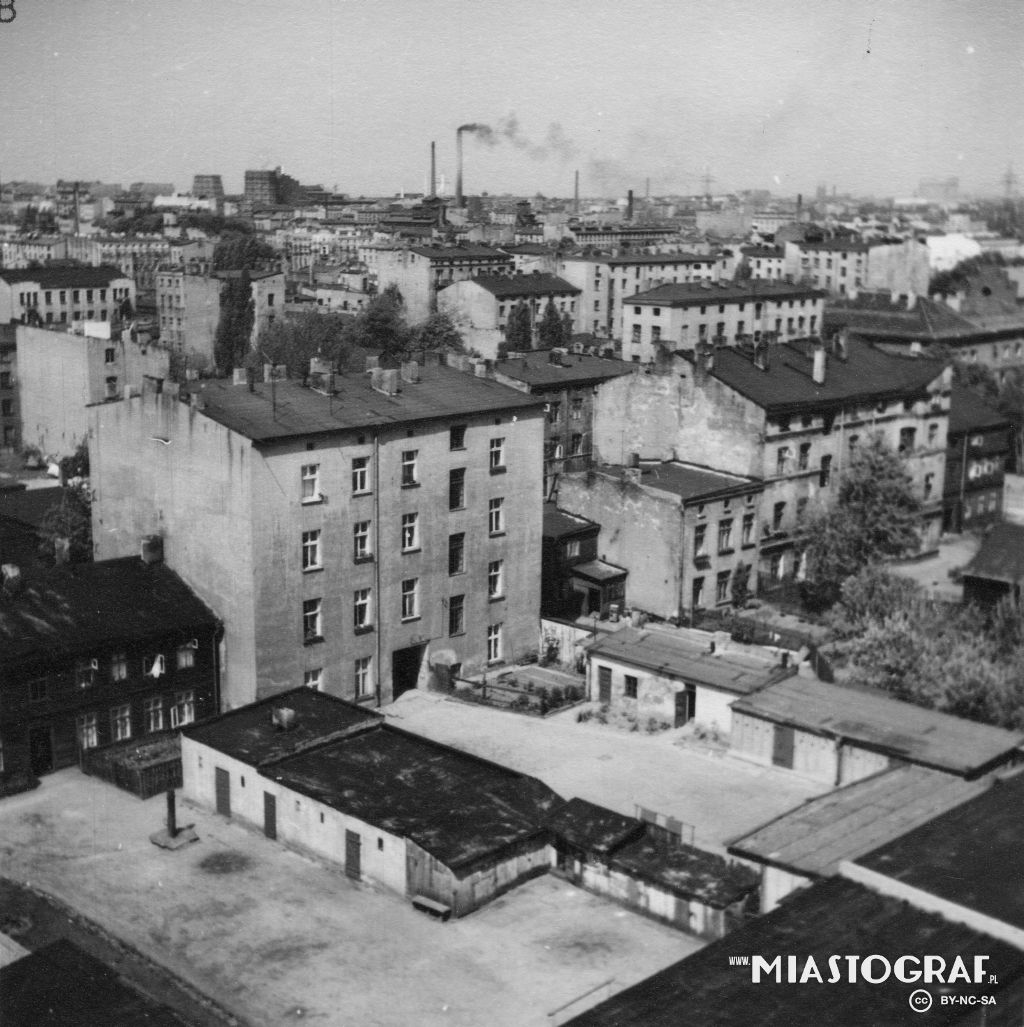 Widok z wieży katedry w kierunku płn.- zach.( po 1927r.). Po prawej kamienica z ul.Radwańska 19 / Wólczańska, po lewej szpital ewangelicki św. Jana. tid.