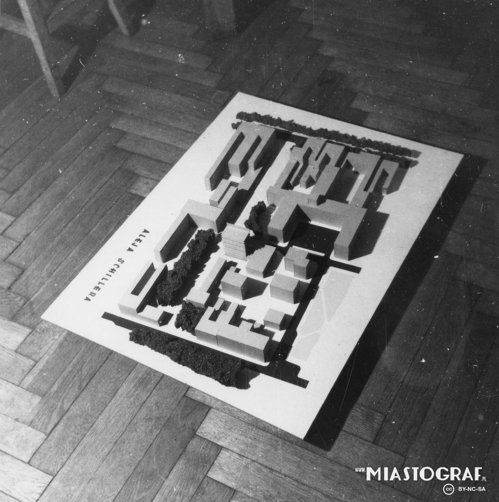 Widok ul. Narutowicza - po lewej Biurowiec Centrali Tekstylnej i siedziba TV.
