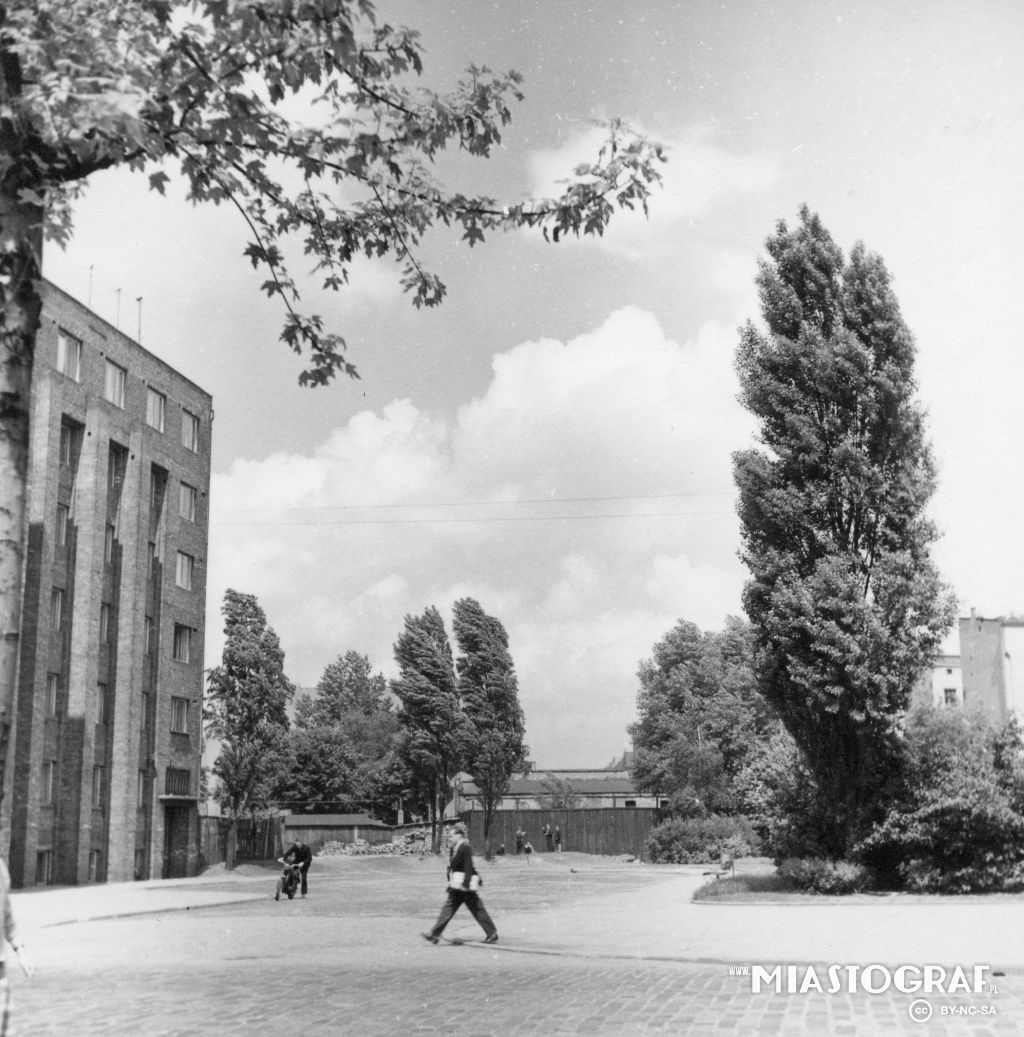 Widok na oficyny i podwórka kamienic stojących przy ul. Kilińskiego, na odc. od Dworca Fabrycznego w str. ul. Tuwima. W dali kamienica z kopułą to ul. Tuwima 40 / Kilińskiego.