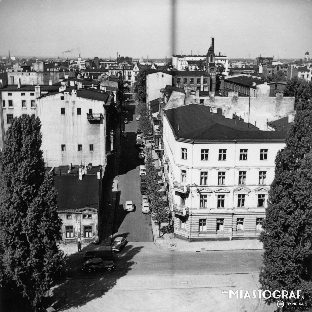 Widok z wieży katedry w kierunku płn.- zach.( po 1927r.). Po prawej kamienica z ul.Radwańska 19 / Wólczańska, po lewej szpital ewangelicki św. Jana. tid.
