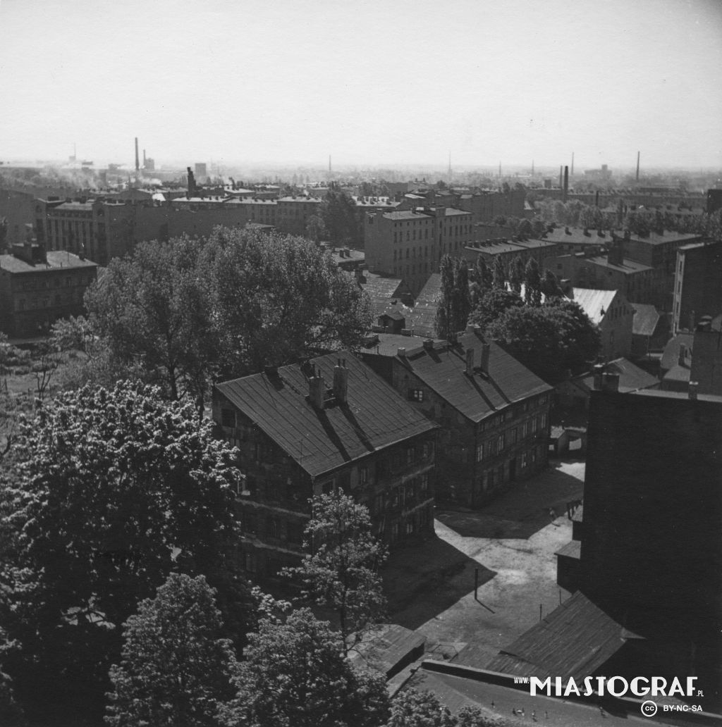 Widok z wieży kościoła św. Jana na zabudowę obu str. ul. Głównej - obecnie al. Piłsudskiego.