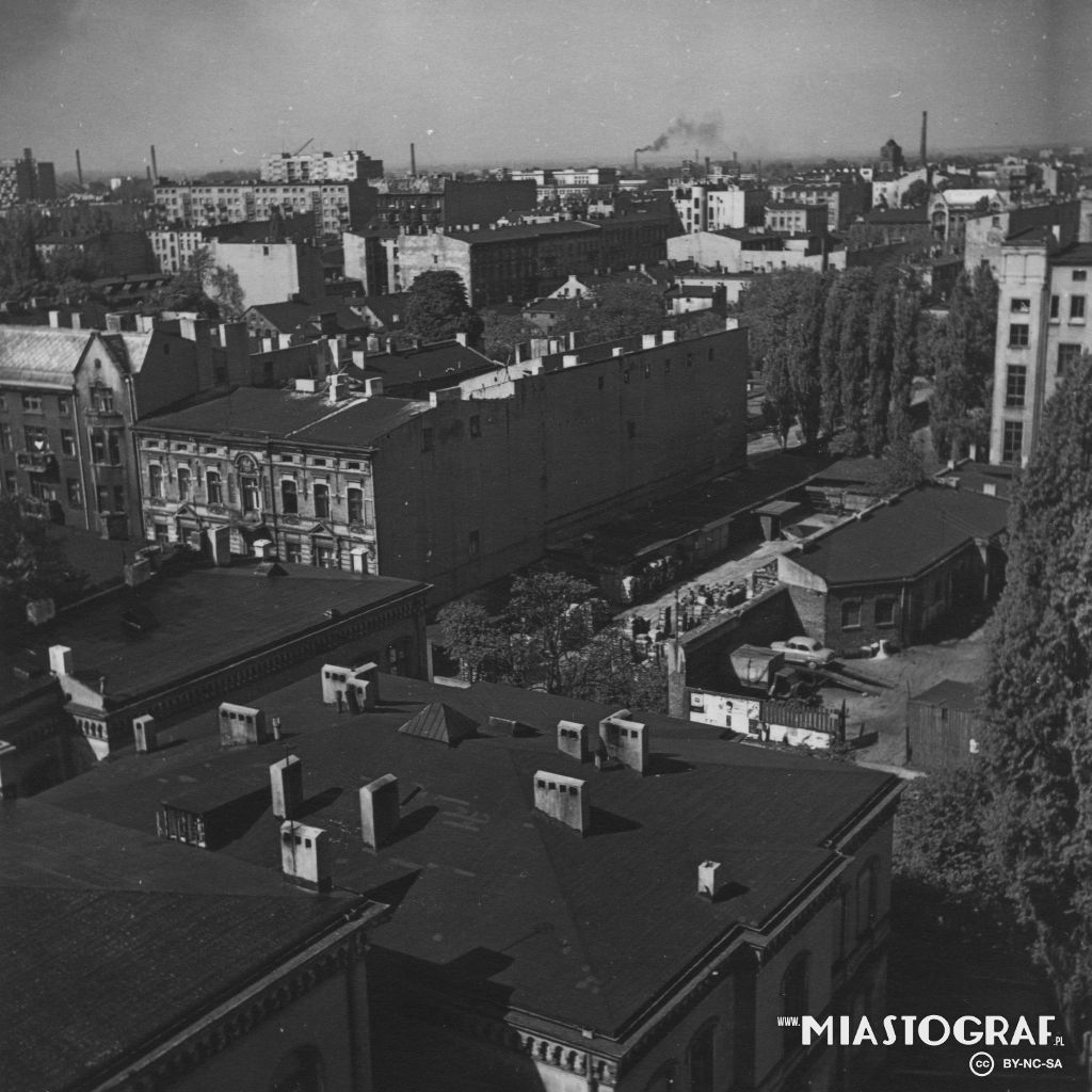 Widok z wieży katedry w kierunku płn.- zach.( po 1927r.). Po prawej kamienica z ul.Radwańska 19 / Wólczańska, po lewej szpital ewangelicki św. Jana. tid.
