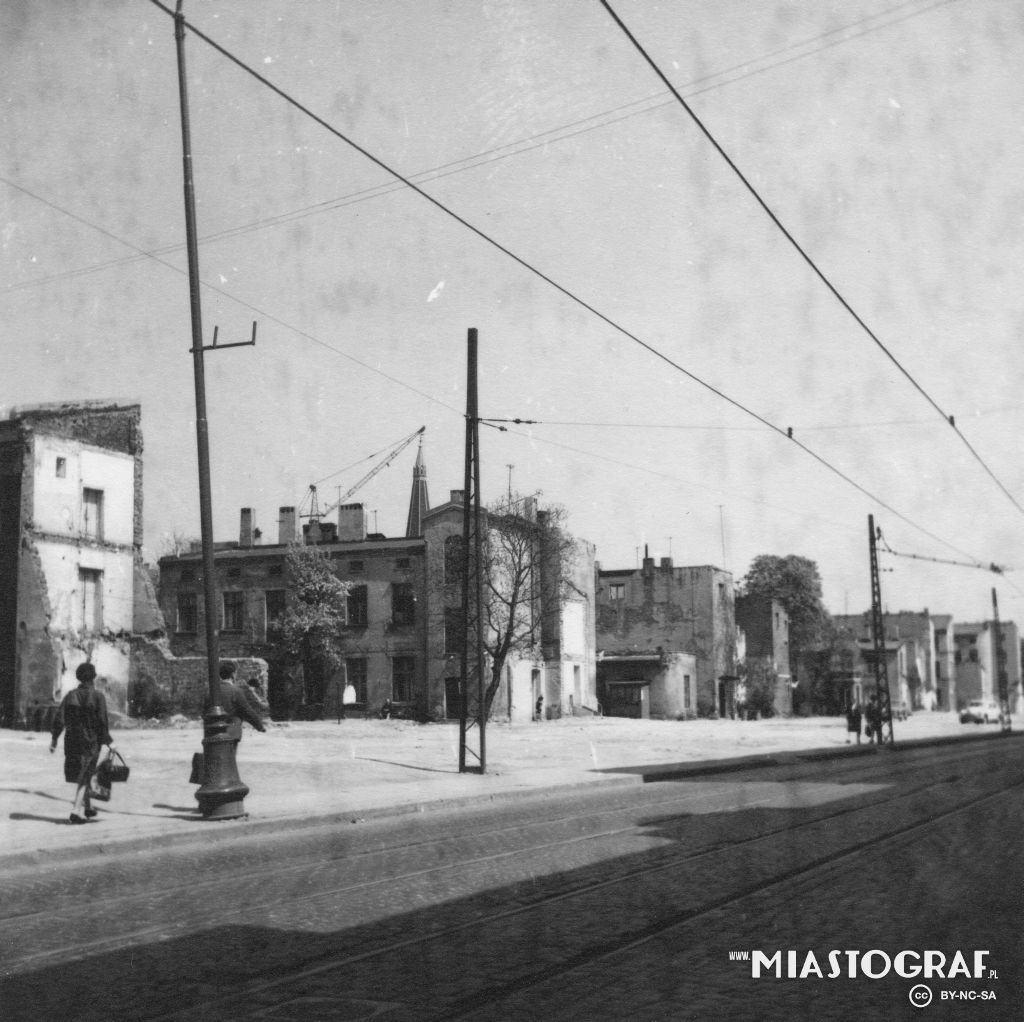 Ul. Główna (dzisiejsza al. J. Piłsudskiego ) stanowiła główny trakt na osi wschód-zachód kształtującej się Łodzi; łączyła Nową Dzielnicę z ulicą Piotrkowską. Wyburzenia pod trasę W-Z. Widok w str. ul...