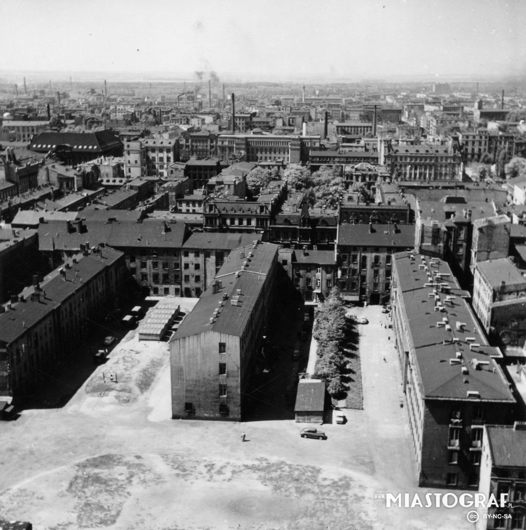 Widok z wieży katedry w kierunku płn.- zach.( po 1927r.). Po prawej kamienica z ul.Radwańska 19 / Wólczańska, po lewej szpital ewangelicki św. Jana. tid.