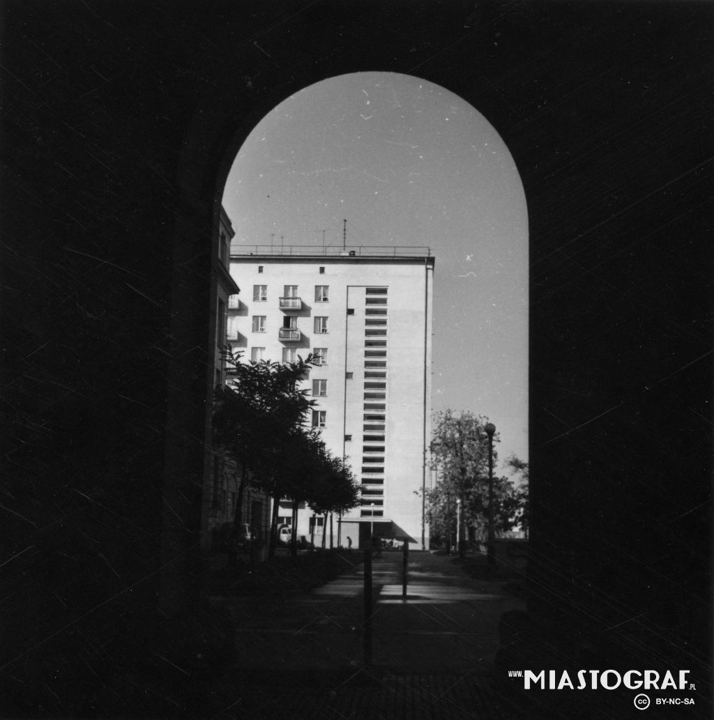 Niezabudowana działka pod nr 137. Przed wojną, ostatnimi właścicielami tej działki było małżeństwo Klary Alwiny i Juliusza Roberta Kindermannów. Widok na budynek z al. Kościuszki 74/78, w którym mieśc...