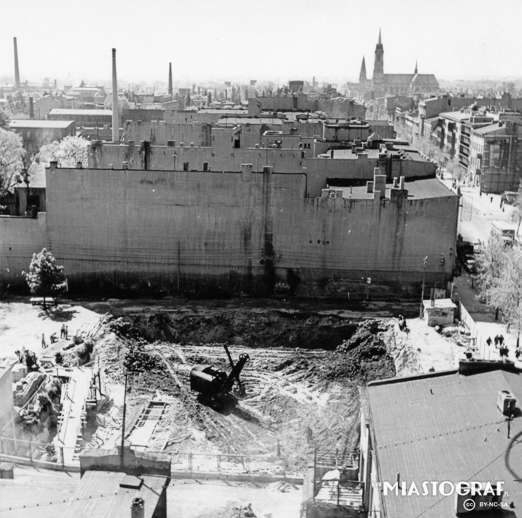 Widok z "Adasia" w kierunku południowym miasta. Widoczny plac budowy to Piotrkowska nr 186,188, 190. W tym miejscu stanie budynek DH DOMUS.