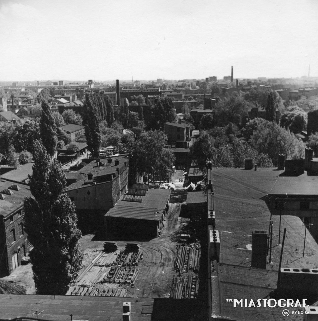 Widok z wieży katedry w kierunku płn.- zach.( po 1927r.). Po prawej kamienica z ul.Radwańska 19 / Wólczańska, po lewej szpital ewangelicki św. Jana. tid.