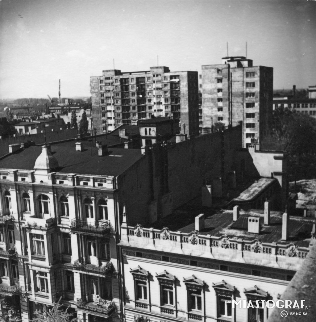 Widok z wieży katedry w kierunku płn.- zach.( po 1927r.). Po prawej kamienica z ul.Radwańska 19 / Wólczańska, po lewej szpital ewangelicki św. Jana. tid.